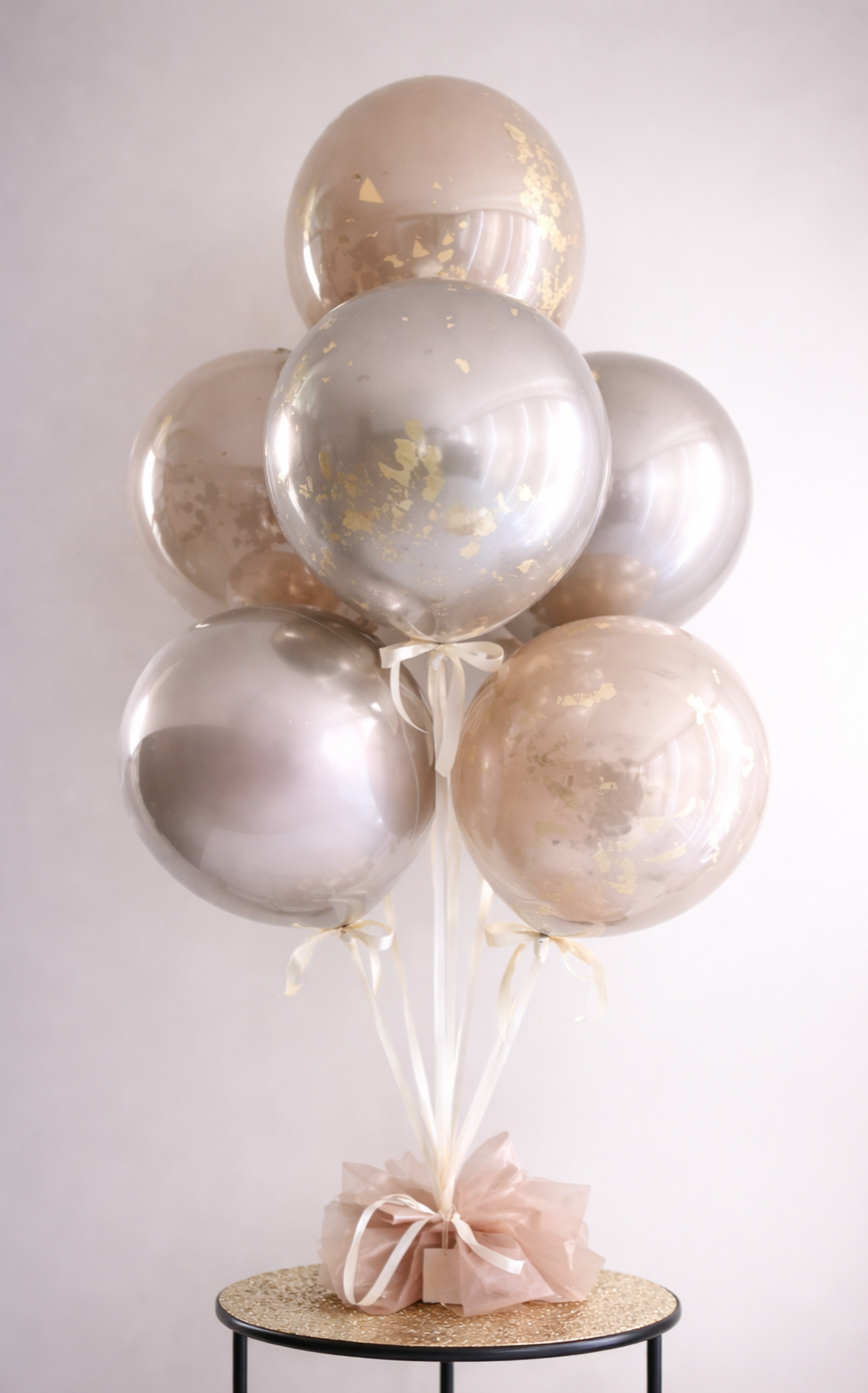 Superior craftsmanship: Double-layered balloon shells create a crystalline sheen, with satin ribbon ties, and unique design elements - a one-of-a-kind centrepiece for any occasion.